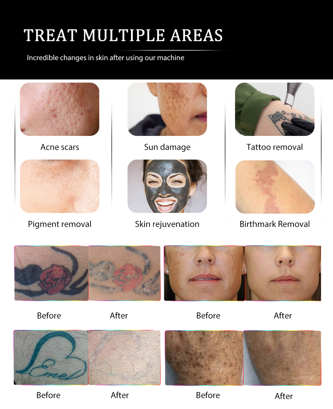 In conclusion, the EL900 picosecond laser tattoo removal machine model of picosecond laser technology offers a range of benefits that make it a valuable tool in the field of aesthetic treatments. From tattoo and pigmentation removal to carbon peeling and faster treatment times, the EL900‘s advanced features and high energy output contribute to its effectiveness. With its emphasis on safety and versatility, the EL900 tattoo removal machine model stands as a reliable and efficient option for practitioners and clients alike. Embrace the power of picosecond laser technology with the EL900 pico laser tattoo removal machine model and unlock a world of possibilities in aesthetic treatments.