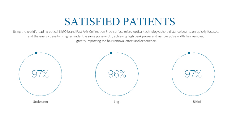 Half the treatment time.offers deep penetration of the hair follicle with high average power, a high repetition rate and a large spot size for fast treatment. Its deep penetration capabilities target the Bulge and Bulb of the hair follicle while moderate tissue depth penetration makes it ideal for treating the arms, legs, cheeks and beard.